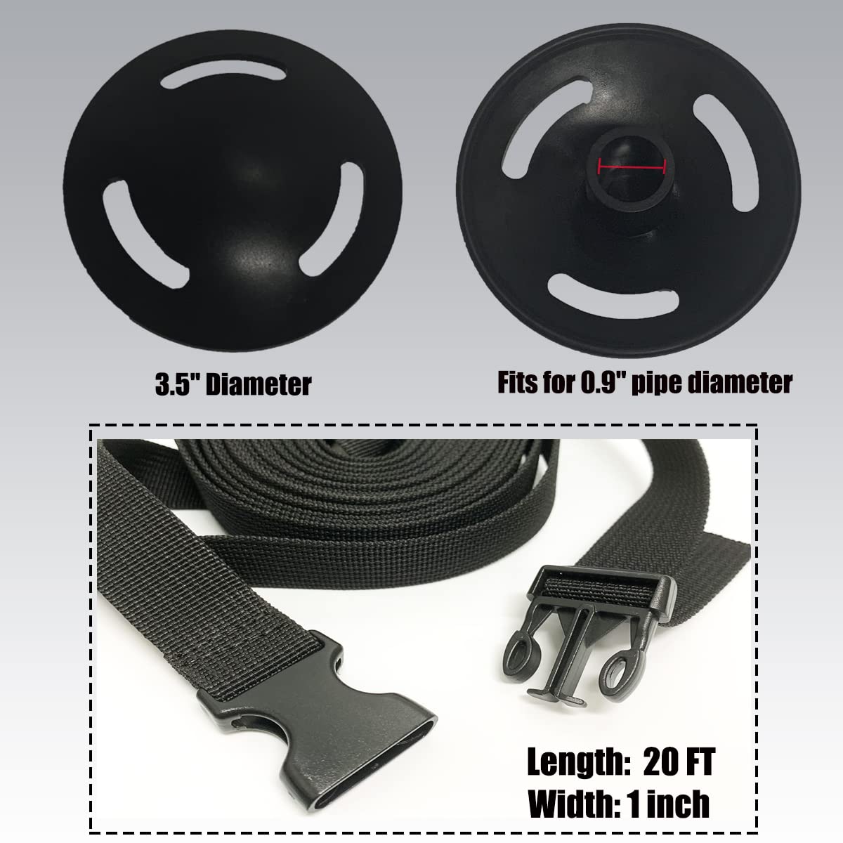 • Mushroom top cap accepts additional support straps, comes 3 webbing straps (20ft length) with a hook at each end. Supports any area of a boat cover.