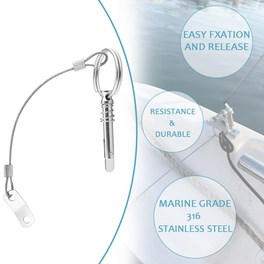 Boat Bimini Top Quick Release Pin, 316 Stainless Steel, 1/4" Diameter w/Drop Cam & Spring, Marine Canopy Hardware Accessories