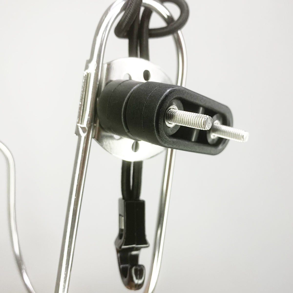 Easy to use, There is a plastic keeper piece on the other side and the holes in the metal line up with the holes in the plastic (so you can bolt this hook on your stern pulpit) or around any round object wether the round object is horizontal, vertical.