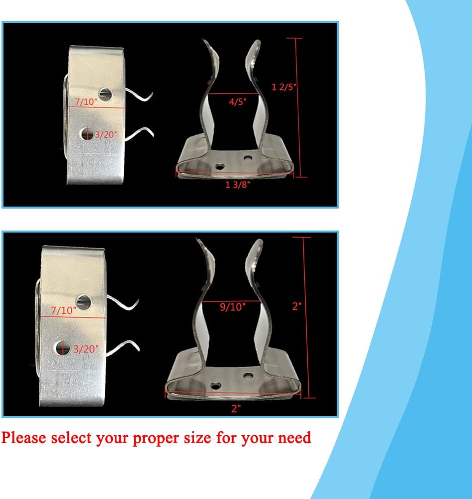 The hook spring clamp holder have clips opening I.d 4/5" to 1" or 9/10" to 1 3/4". Please select your proper size for your need.