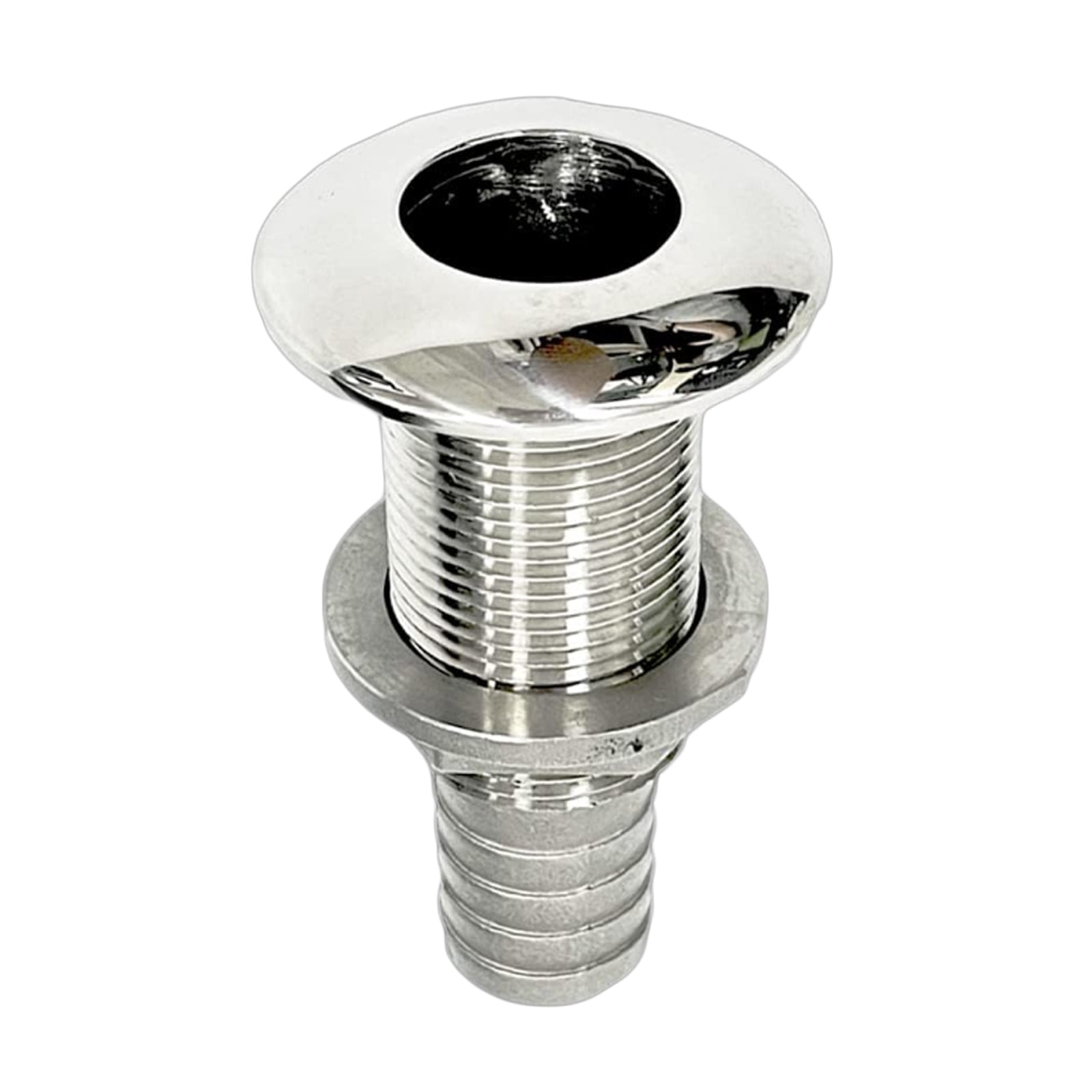 - Made of marine stainless steel thru hull fitting for connect with hose barb.