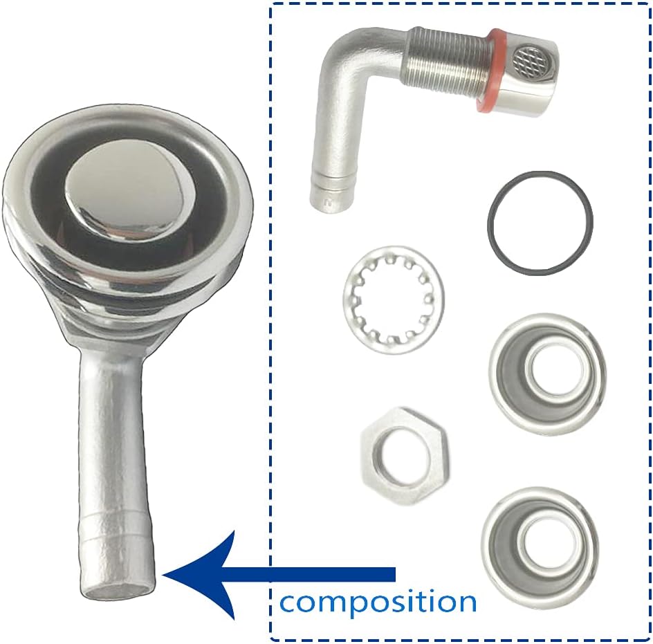 Marine Boat Fuel Tank Vent for 5/8 inch (15.8mm) Hose, Stainless Steel 90° Flush Mount Fuel Gas Vent with Mounting Gasket Hardware Fitting