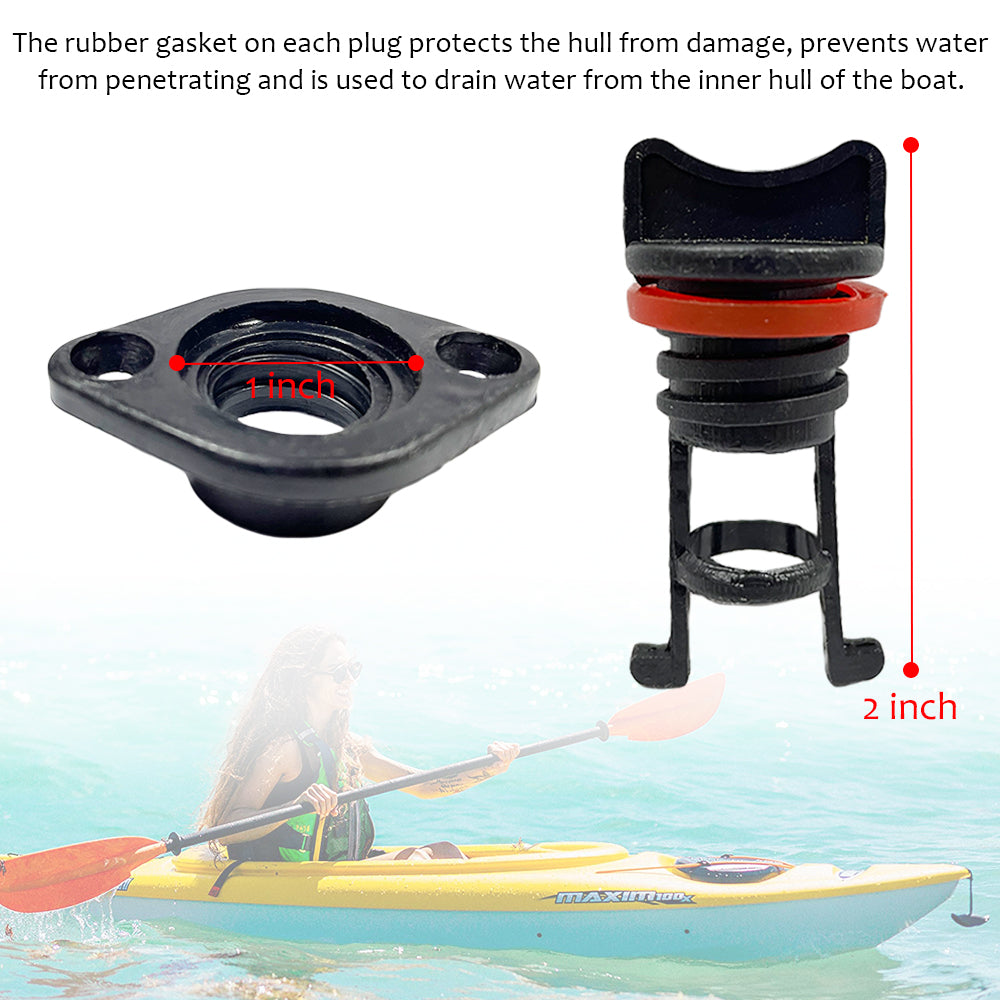 - The red gasket provides a secure seal to prevent unwanted water from entering your boat, while the two prongs on the bottom keep the gear kayak drain plug from accidentally falling out when unscrewed.