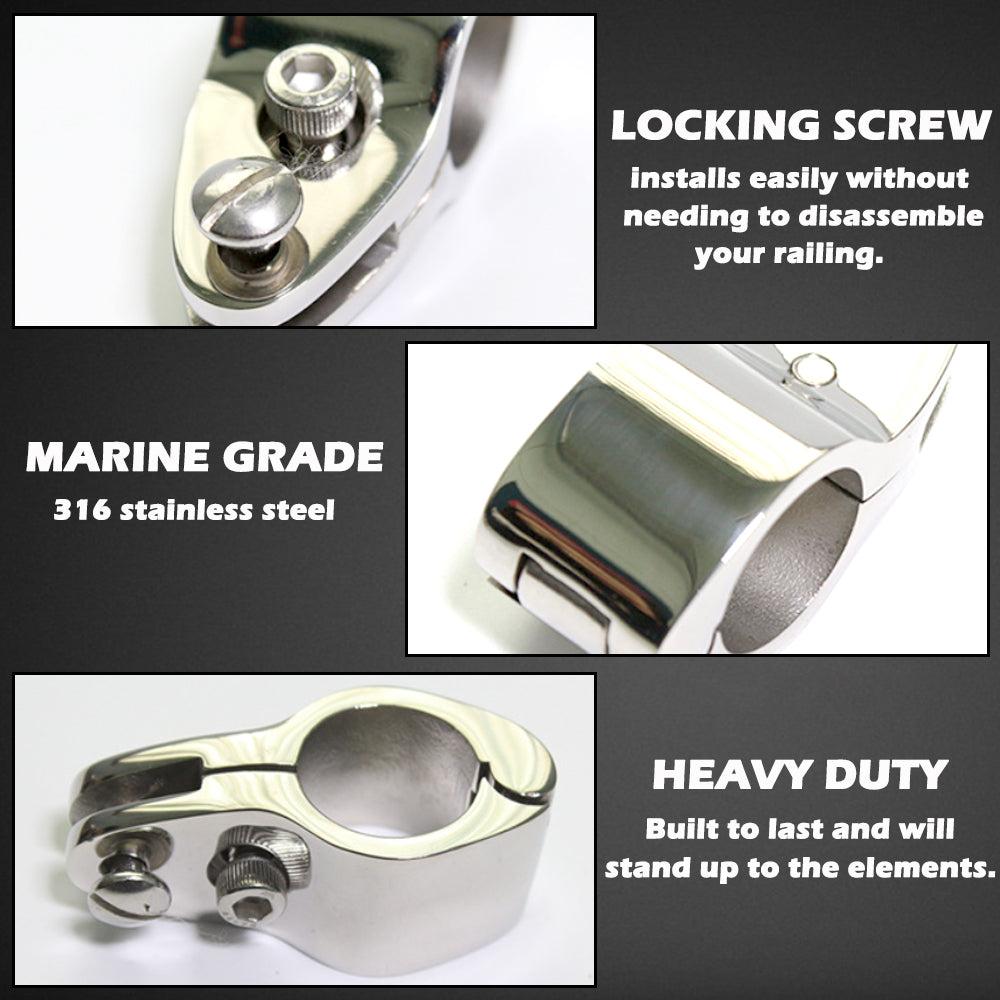 Bimini rail top hinge with locking screw function, installs easily without needing to disassemble your railing.